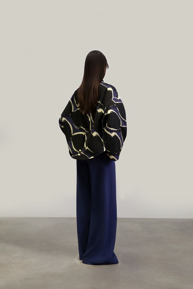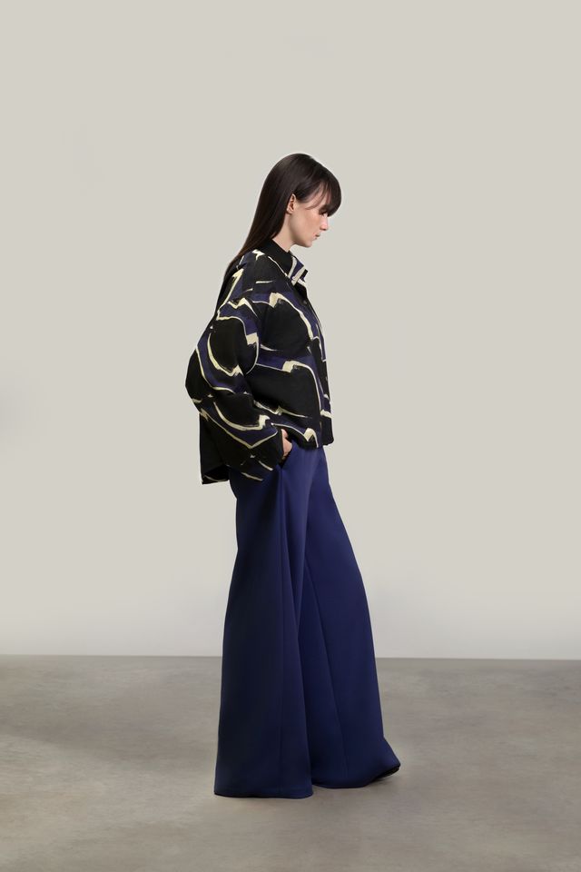 Loose-fitting shirt with long sleeves, lightly padded, slightly longer at the back, with a small red embroidered F-e logo on the collar at the back