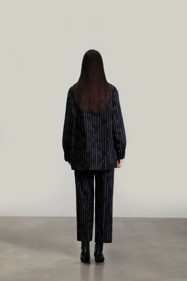 Oversized jacket that closes with two rows of wooden buttons inscribed with F.Egidio.