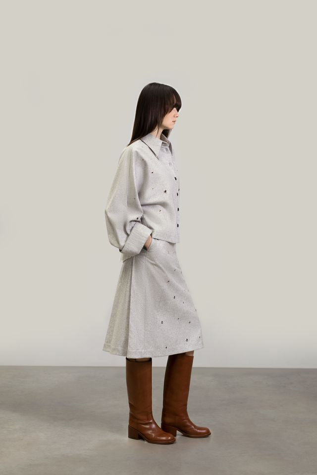 Oversized wool shirt with metal accessories on the front and sleeves!